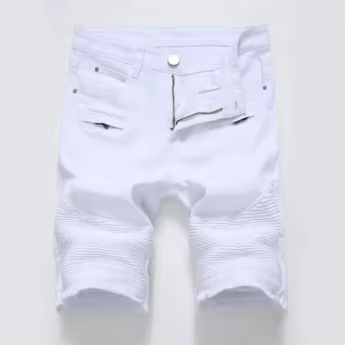 Men's Red Denim Shorts with Pleats and Holes, Asian Size