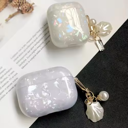 Luxury Pearl Shell Soft Case with Keychain for Apple AirPods