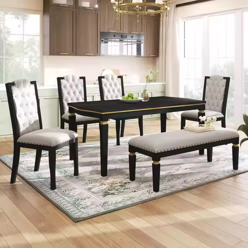 6-Piece Kitchen Dining Set with Rectangular Table and Tufted Chairs