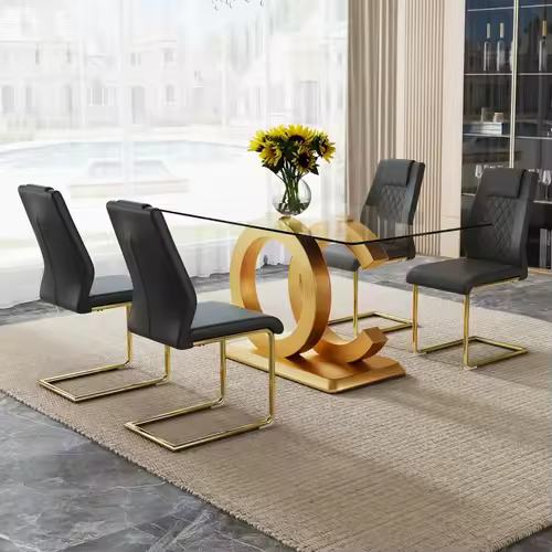 Modern 5-Piece Dining Table Set for 4 with Glass Top