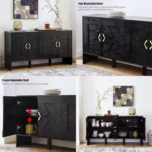 60-Inch Mid-Century Modern Buffet Sideboard with Adjustable Shelves