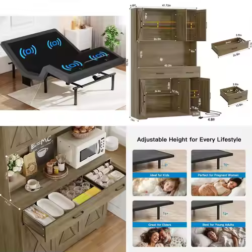 Pipishell Queen Adjustable Electric Bed Frame with Massage & USB Ports