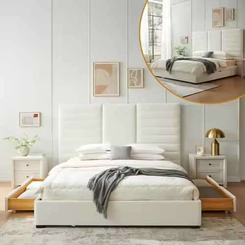 King Velvet Upholstered Platform Bed Frame with Metal Support