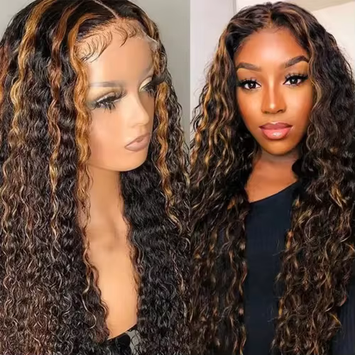 30 Inch Deep Wave Lace Front Human Hair Wig 200% Density P4/27 Highlight