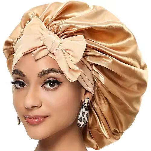 Custom Logo Satin Bonnet for Women with Wide Stretch Ties