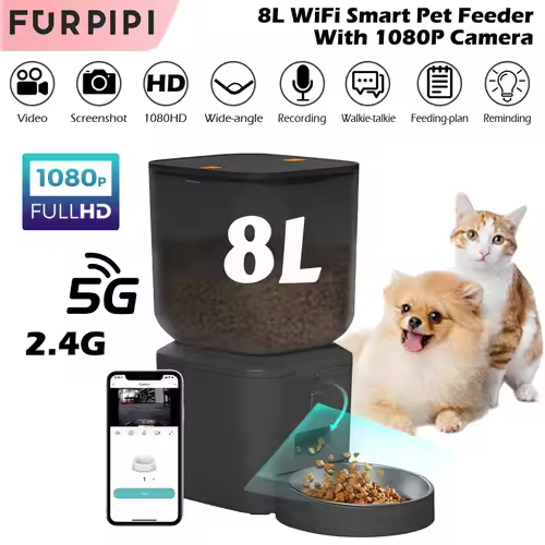 8L Automatic Cat Feeder with 1080p Camera & 5G WiFi Smart Voice Recorder