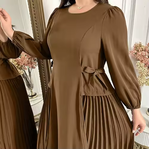 2026 Spring Women's Plus Size Long Sleeve Pleated Dress 4XL